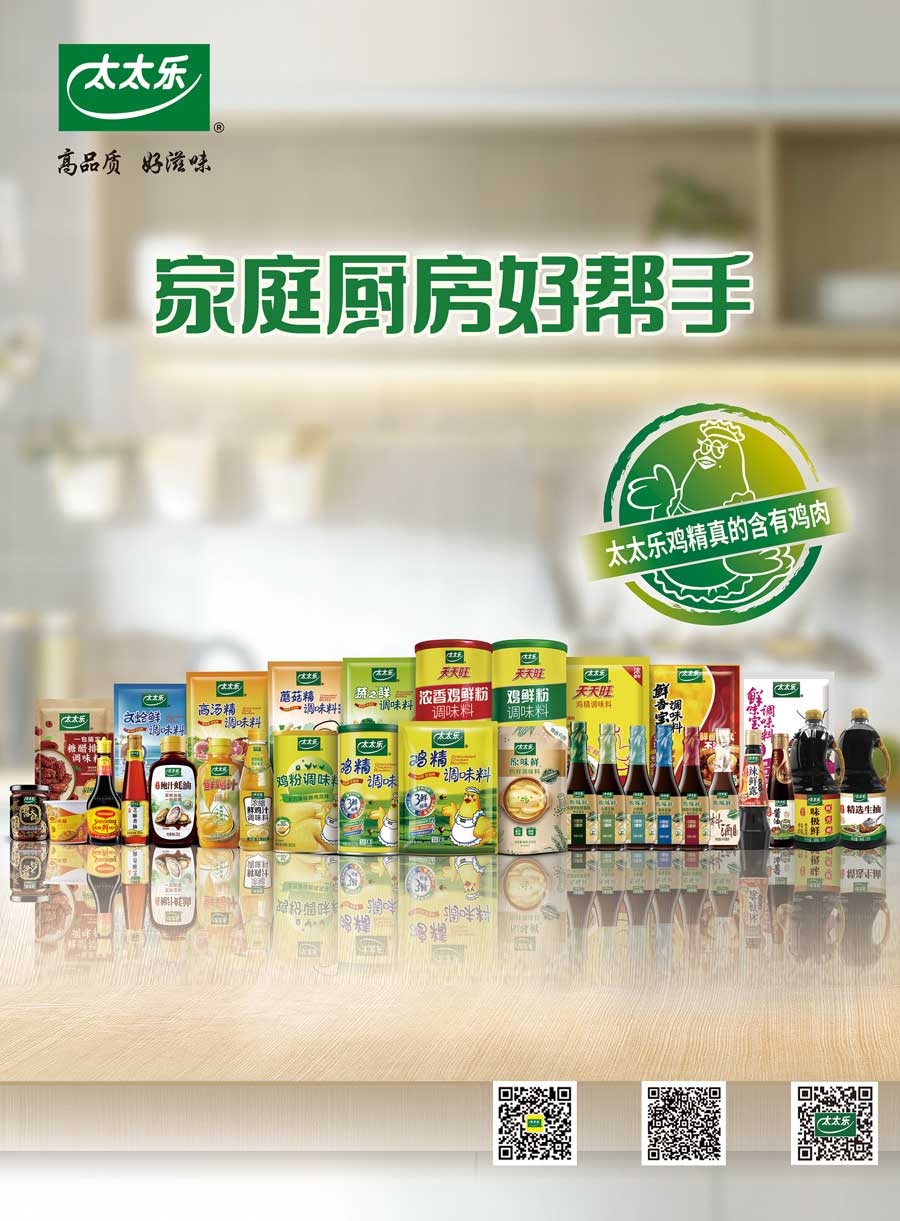 太太樂產(chǎn)品覆蓋固態(tài)復(fù)合風(fēng)味調(diào)味料和液態(tài)增鮮調(diào)味料兩大類的不同系列,多個(gè)子品牌,產(chǎn)品規(guī)格近300個(gè)品項(xiàng)。太太樂憑借雀巢體系的國際化管理體制、全球化質(zhì)量監(jiān)管體系、強(qiáng)大的研發(fā)實(shí)力和卓越的員工團(tuán)隊(duì),依托以餐飲、零售、電商、出口為主的四大銷售渠道,銷售網(wǎng)絡(luò)覆蓋全國各地,并出口至美國、加拿大、日本、中東等國家和地區(qū)。作為鮮味科學(xué)倡導(dǎo)者,太太樂以“讓十三億人嘗到更鮮美的滋味”為企業(yè)愿景,持續(xù)鮮味行業(yè)革新升級。
