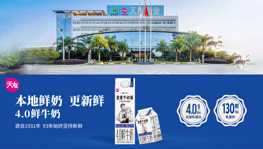重慶市天友乳業(yè)股份有限公司始創(chuàng)于1931年,是一家具有93年歷史的專業(yè)乳制品全產(chǎn)業(yè)鏈企業(yè)。一直以成為“百年天友”為目標,始終以“成為最值得消費者喜愛的乳品領(lǐng)軍企業(yè)”為愿景。