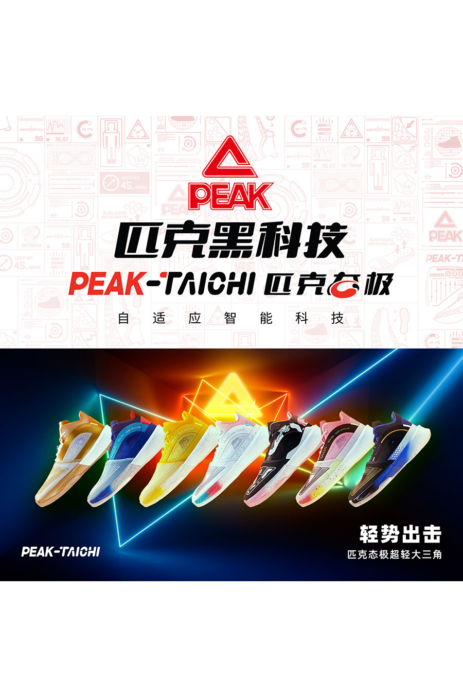 近年來,匹克以科技創(chuàng)新為驅動,實施產(chǎn)業(yè)升級。2018年底,由匹克自主研發(fā)的“態(tài)極”科技,因其鞋底瞬間軟彈的特性,打破國際技術壟斷,受到了消費者的熱捧,引爆市場。依托于“態(tài)極”科技,匹克還開發(fā)出跑步鞋、休閑鞋、拖鞋、籃球鞋等系列產(chǎn)品,多品類銷售躋身行業(yè)前五,成為新國潮代表。截至目前,匹克擁有核心專利近300個,還在3D打印科技、超氫科技等前沿科技創(chuàng)新引領。