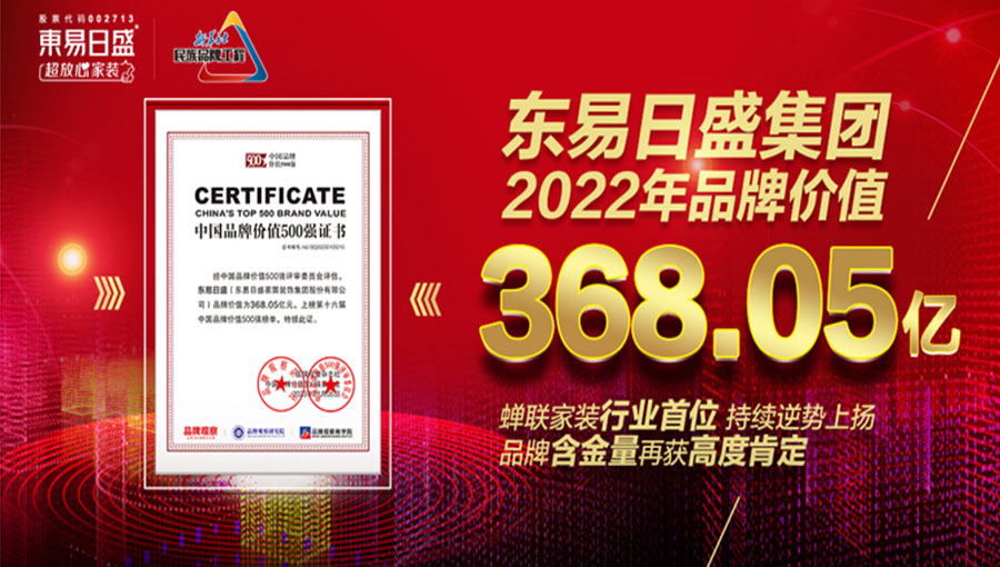 東易日盛家居裝飾集團(tuán)股份有限公司始創(chuàng)于1997年,目前已發(fā)展為一家專業(yè)化、品牌化、數(shù)字化、規(guī)?;?、產(chǎn)業(yè)化的大型上市家裝集團(tuán)公司(股票代碼:002713),連續(xù)多年居于《中國最具價(jià)值品牌500強(qiáng)》家裝行業(yè)前列,品牌價(jià)值高達(dá)368.05億元。