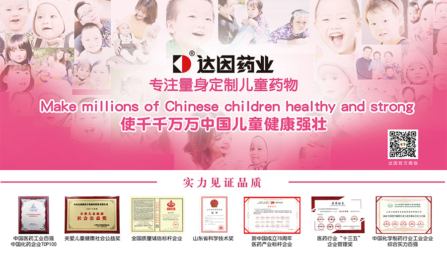 山東達因海洋生物制藥股份有限公司(簡稱達因藥業(yè)),是中國醫(yī)藥企業(yè)管理協(xié)會兒童用藥專業(yè)委員會主任委員單位,以“使千千萬萬中國兒童健康強壯”為使命,專注于兒童健康領(lǐng)域產(chǎn)品研發(fā)、生產(chǎn)和市場營銷,以專業(yè)和責(zé)任捍衛(wèi)兒童用藥安全,在兒科專業(yè)用藥領(lǐng)域取得了良好的口碑和覆蓋率,樹立了中國兒童用藥的旗幟地位。達因藥業(yè)產(chǎn)品線涉及兒童藥品、兒童保健食品和兒童營養(yǎng)食品、兒童健康用品等領(lǐng)域,形成了以“兒童保健和治療”領(lǐng)域為核心的兒童健康產(chǎn)業(yè)布局。