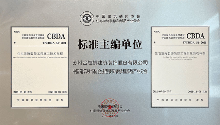 2021年,作為核心主編及實施單位參與了CBDA《住宅裝飾裝修工程施工技術(shù)規(guī)程》和CBDA《住宅室內(nèi)裝飾裝修工程施工質(zhì)量驗收標(biāo)準(zhǔn)》的制訂工作,以高標(biāo)準(zhǔn)嚴要求完成住宅裝飾行業(yè)第一部規(guī)范標(biāo)準(zhǔn)制定。