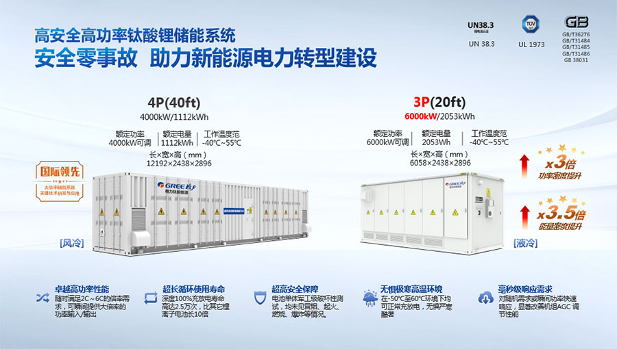 鈦酸鋰電池技術(shù)是新能源行業(yè)唯一獲得中國專利獎金獎的鋰電池產(chǎn)品技術(shù),其應(yīng)用于儲能電池和動力電池具有超高安全性,在快充放、耐寬溫、長壽命等方面同樣具有卓越的性能。格力鈦電池系列產(chǎn)品具有不起火不爆炸高安全、6分鐘快充放、-50℃至60℃耐寬溫特性,循環(huán)充放電次數(shù)高達(dá)30000多次,使用壽命長達(dá)30年。格力鈦電池經(jīng)利鋸切割、尖針穿刺、強(qiáng)力擠壓、電鉆沖孔、短路充放電、高溫加熱、槍擊等極限條件測試,均未發(fā)生冒煙、起火、燃燒、爆炸等現(xiàn)象。