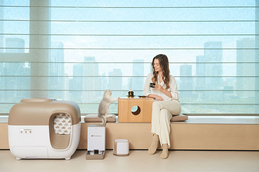 主要產(chǎn)品:PetSnowy糯雪智能全自動(dòng)貓砂盆、烘干箱、智能飲水機(jī)、智能喂食器、空氣凈化器、儲(chǔ)糧桶等多品類(lèi)寵物智能用品