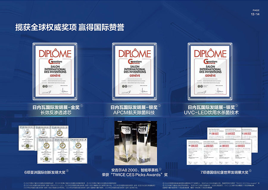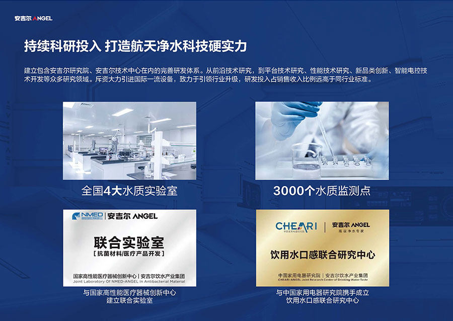 38年間,安吉爾堅持科技創(chuàng)新并主導行業(yè)技術升級,參與制定17項國家及行業(yè)標準,獲得900余項技術專利,建成4大水質實驗室。2023年,該企業(yè)憑借創(chuàng)新實力包攬全球9項發(fā)明大獎,包括3項日內瓦國際發(fā)明展獎項與6項亞洲創(chuàng)新發(fā)明展獎項。