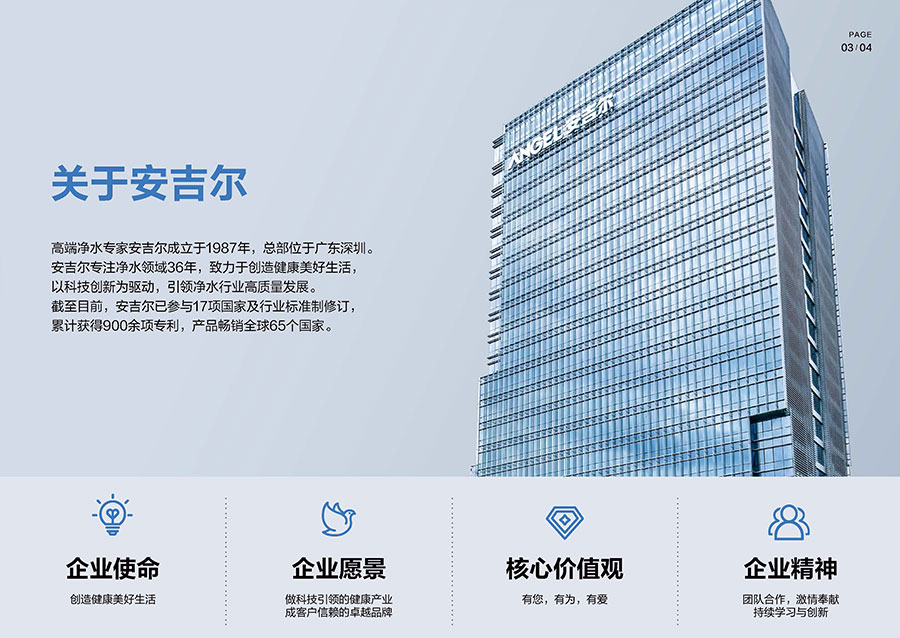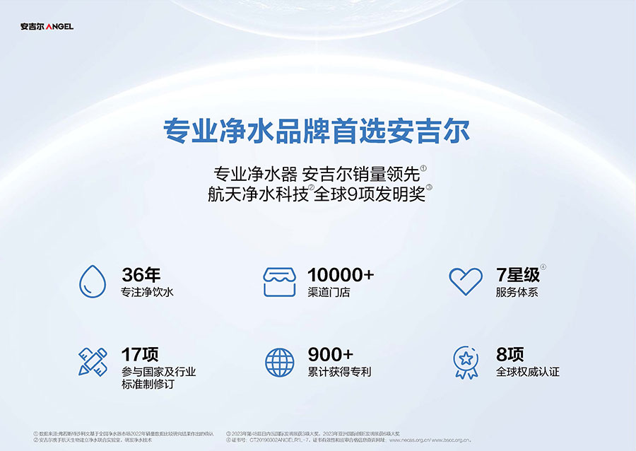 安吉爾成立于1987年,總部設立于廣東深圳。該品牌深耕凈水領域38年,其專業(yè)凈水器產品銷量持續(xù)領先。目前該企業(yè)已構建超10000家渠道門店網(wǎng)絡,其中包含近2000家專賣店,產品暢銷全球65個國家,累計服務超500萬活躍用戶。