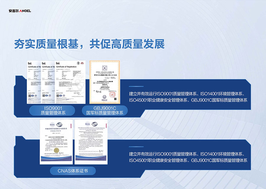 安吉爾布局三大生產基地,其中安吉爾環(huán)境科技智慧園占地面積逾60萬平方米,具備年產1000萬臺(套)凈飲水產品的制造能力。生產體系已獲得中國CQC、美國UL、加拿大CSA等全球八項權威認證機構認可。