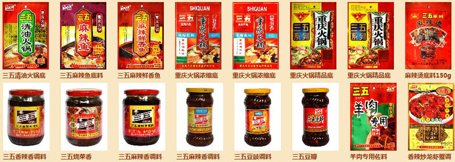 主要產(chǎn)品:“三五”牌、“世全”牌、“火成”牌、“三佳”牌火鍋?zhàn)袅希?ldquo;三五”牌火鍋調(diào)料