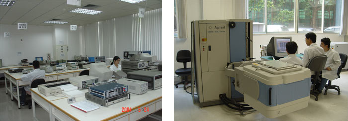 在產(chǎn)品檢測方面經(jīng)過近半個世紀(jì)的積累和發(fā)展,檢測中心已經(jīng)成為擁有專業(yè)試驗場地2000多平方米,各類先進(jìn)儀器設(shè)備700多臺/套,專業(yè)技術(shù)人員60多人的專業(yè)檢測試驗室。具有滿足國際最高標(biāo)準(zhǔn)的恒溫恒濕間300平方米、標(biāo)準(zhǔn)測試間600多平方米、標(biāo)準(zhǔn)試驗大廳1000多平方米、集成電路萬級凈化測試間250平方米。試驗室內(nèi)有保證試驗正常進(jìn)行的能源、光、電和通風(fēng),并有專門設(shè)施監(jiān)控環(huán)境條件。測量間內(nèi)的環(huán)境溫度長期控制在23±2℃,相對濕度為50±5%RH。各類試驗間均能滿足溫度15~35℃,相對濕度45~75%RH這一條件。