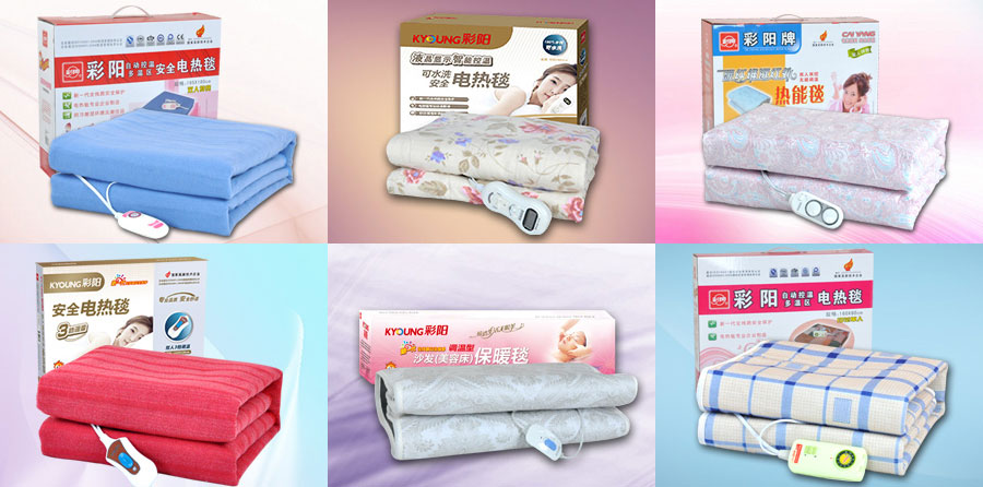 主要產(chǎn)品:彩陽電熱毯、電熱墊