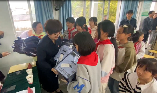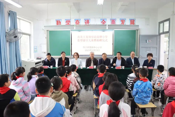 為積極響應(yīng)市關(guān)工委關(guān)心下一代工作的號(hào)召,4月13日下午,安徽永峰制衣有限公司總經(jīng)理葉建萍參加了由市關(guān)工委牽頭組織黃山日?qǐng)?bào)社、市婦聯(lián)、休寧縣關(guān)工委等多個(gè)部門(mén)參加的看望休寧縣南塘小學(xué)留守兒童和捐贈(zèng)校服活動(dòng)。