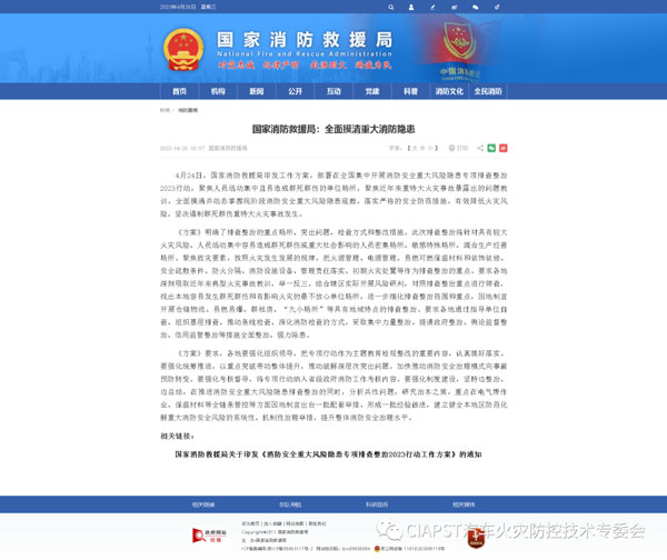 詳情點(diǎn)擊:國家消防救援局:全面摸清重大消防隱患
