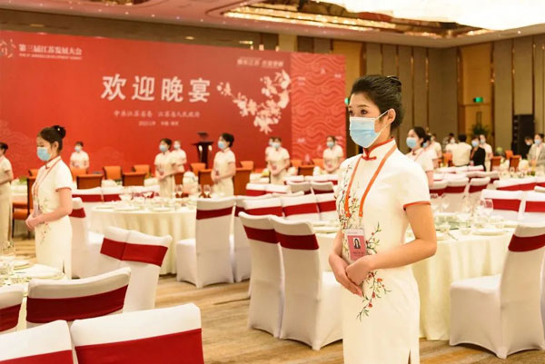 為了保障晚宴接待服務(wù)萬無一失,集團從金陵飯店股份有限公司、江蘇金陵旅游投資管理集團有限公司、南京金陵酒店管理有限公司所轄酒店抽調(diào)優(yōu)秀的廚師、服務(wù)人員,大部分人員具有前兩屆大會晚宴積累和沉淀的豐富經(jīng)驗,組成了“以老帶新”的接待服務(wù)團隊,并針對本次晚宴的特點進行了嚴格的專業(yè)培訓(xùn)和全要素演練。在兄弟單位鼎力支持和團結(jié)協(xié)作下,較短的時間內(nèi)完成了從菜單落實、餐具準備、統(tǒng)一制服,到場地布置、流程設(shè)計、物資采購等一系列工作。憑著精湛的技藝和踏實的作風(fēng),在宴會當晚,菜肴出品簡約精致,宴會流程順暢規(guī)范,接待服務(wù)自信從容,進一步擦亮了“金陵”金字招牌,彰顯國企責(zé)任擔(dān)當。