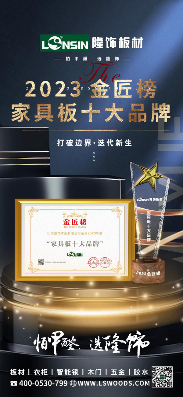 品牌加冕,榮耀所歸!隆飾板材斬獲“2023年度家具板十大品牌”榮譽(yù)獎項(xiàng)