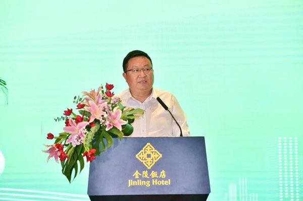 畢金標(biāo)發(fā)表了熱情洋溢的致辭。他指出,今年是全面貫徹黨的二十大精神的開(kāi)局之年,是加快建設(shè)農(nóng)業(yè)強(qiáng)省的起步之年,也正值金陵飯店開(kāi)業(yè)四十周年。為深入貫徹落實(shí)黨中央、省委關(guān)于開(kāi)展學(xué)習(xí)貫徹習(xí)近平新時(shí)代中國(guó)特色社會(huì)主義思想主題教育的統(tǒng)一部署要求,金陵飯店集團(tuán)秉承綠色化、特色化、品牌化的發(fā)展理念,在省農(nóng)業(yè)農(nóng)村廳的指導(dǎo)和支持下,推進(jìn)與江蘇省及各地市綠色食品辦公室、省綠色食品協(xié)會(huì)、高??蒲性核?ldquo;兩品一標(biāo)”農(nóng)產(chǎn)品企業(yè)在生態(tài)農(nóng)業(yè)、綠色食品等領(lǐng)域的深度合作,加強(qiáng)綠色地標(biāo)食材源頭直采,健全了HACCP食品質(zhì)量安全保障體系,建立了4000畝“金陵飯店綠色有機(jī)食材基地”,打造了從田間到餐桌優(yōu)質(zhì)、安全、可溯源的綠色食品供應(yīng)鏈,持續(xù)提升綠色供應(yīng)鏈自主可控能力,形成了金陵綠色新“食”尚的品牌優(yōu)勢(shì)和核心競(jìng)爭(zhēng)力。他強(qiáng)調(diào),鄉(xiāng)村振興作為國(guó)家戰(zhàn)略,離不開(kāi)社會(huì)化生態(tài)農(nóng)業(yè)和綠色食品產(chǎn)業(yè)。金陵飯店集團(tuán)與南京農(nóng)業(yè)大學(xué)達(dá)成戰(zhàn)略合作,“牽手”沈其榮院士團(tuán)隊(duì),充分發(fā)揮校企資源優(yōu)勢(shì),深化協(xié)同創(chuàng)新,建立產(chǎn)學(xué)研一體化融合平臺(tái),加強(qiáng)農(nóng)業(yè)科技研發(fā)、技術(shù)攻關(guān)、成果轉(zhuǎn)化和示范推廣,在發(fā)展生態(tài)農(nóng)業(yè)產(chǎn)業(yè)化、綠色食品產(chǎn)業(yè)基地聯(lián)建等領(lǐng)域?qū)崿F(xiàn)互利共贏。同時(shí),授予八家“兩品一標(biāo)”農(nóng)產(chǎn)品供應(yīng)單位為“金陵飯店集團(tuán)綠色食品產(chǎn)業(yè)基地”,有利于構(gòu)建綠色優(yōu)質(zhì)農(nóng)產(chǎn)品供應(yīng)鏈體系,共同推進(jìn)鄉(xiāng)村振興戰(zhàn)略和生態(tài)農(nóng)業(yè)、綠色食品產(chǎn)業(yè)的新發(fā)展。他表示,希望借此機(jī)會(huì)與有關(guān)各方加強(qiáng)合作,讓更多的綠色優(yōu)質(zhì)農(nóng)產(chǎn)品走進(jìn)金陵、走上餐桌,讓生態(tài)農(nóng)業(yè)高質(zhì)量發(fā)展的成果更好地融入消費(fèi)市場(chǎng),讓傳承千年的淮揚(yáng)餐飲文化惠及廣大人民群眾。
