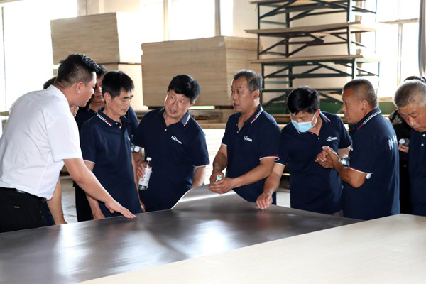 為增進經銷商對公司的了解,更好地發(fā)展合作關系,6月8日上午,隆飾板材山東濟南代理商周洪國周總組織當地裝修公司、木工團體、家具加工廠等合作伙伴一行,蒞臨隆飾板材總部進行了參觀交流,通過近距離的實地參觀,深入了解隆飾板材的生產工藝流程。