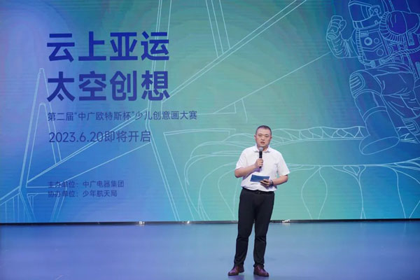 仰望星空,更需腳踏實(shí)地。在杭州亞運(yùn)會(huì)倒計(jì)100天的重要節(jié)點(diǎn),中廣電器集團(tuán)品牌總監(jiān)盧尚有還在發(fā)布會(huì)現(xiàn)場(chǎng)宣布:由中廣歐特斯與少年航天局聯(lián)合舉辦的“云上亞運(yùn) 太空創(chuàng)想”第二屆“中廣歐特斯杯”少兒創(chuàng)意畫(huà)大賽正式啟動(dòng)。