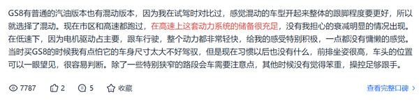 (全新第二代GS8雙擎車主口碑截圖)