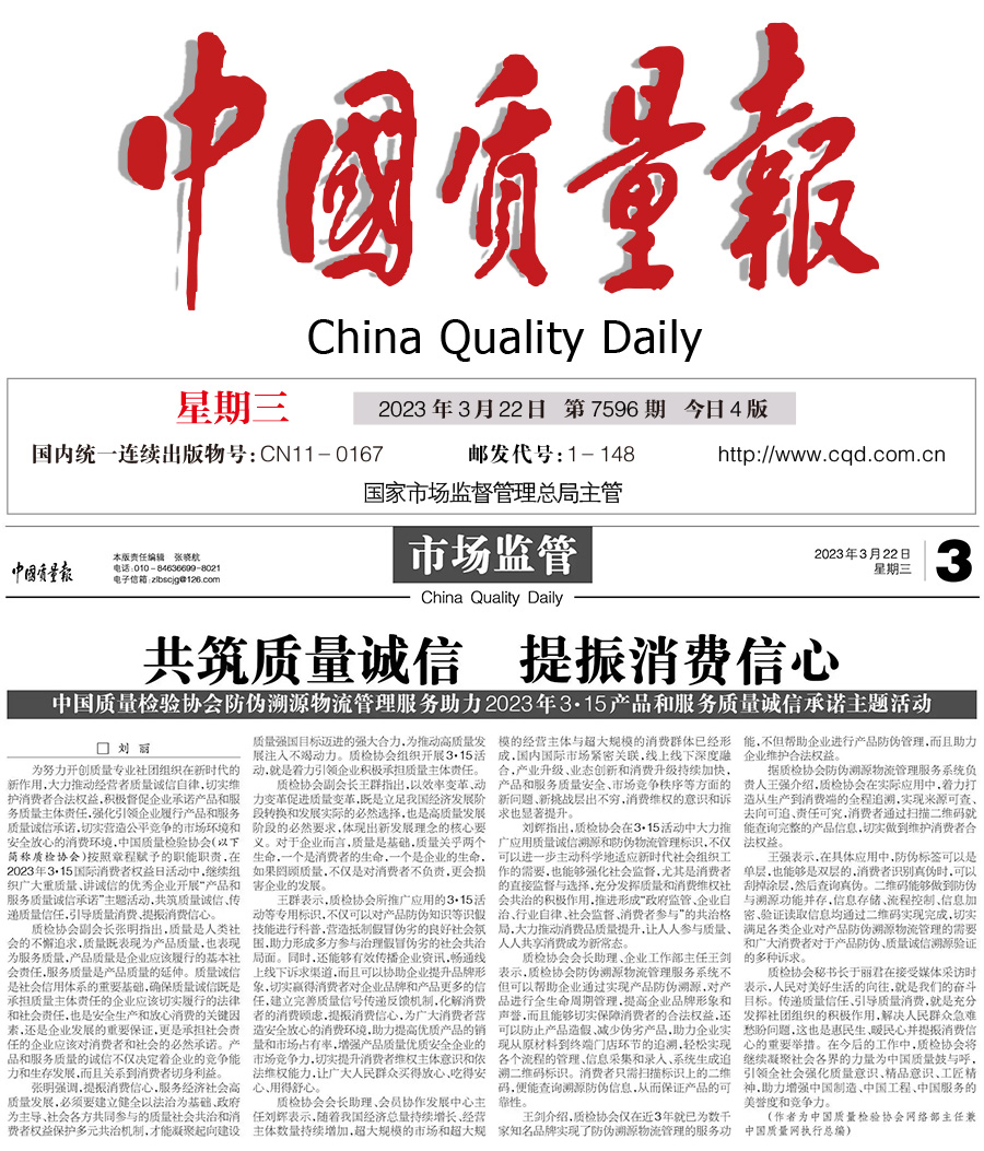 ——中國質量檢驗協(xié)會防偽溯源物流管理服務助力2023年3·15產品和服務質量誠信承諾主題活動