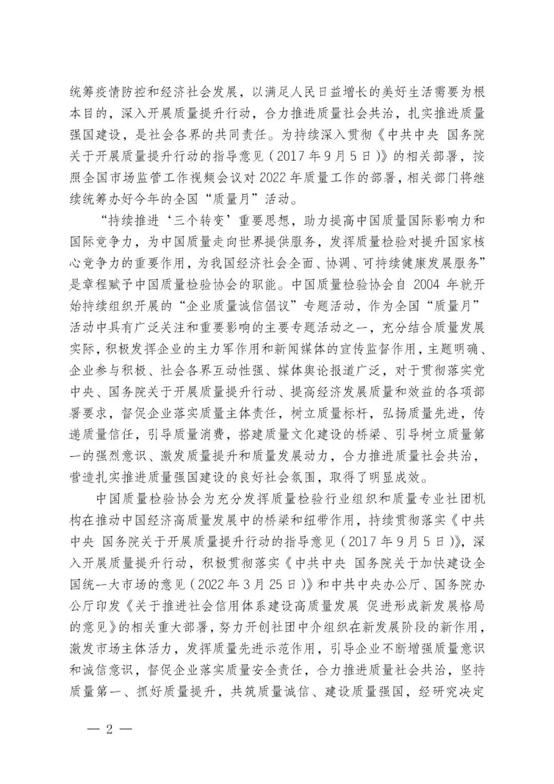 持續(xù)堅(jiān)守,久久為功。45年來,全國“質(zhì)量月”活動(dòng)參與者上億人次,中國質(zhì)量工作也歷經(jīng)了“質(zhì)量振興”“質(zhì)量發(fā)展”及至當(dāng)下“質(zhì)量強(qiáng)國”的非凡歷程。中國質(zhì)量檢驗(yàn)協(xié)會(huì)作為始于1996年就參與全國“質(zhì)量月”的親歷者,我們必將繼續(xù)努力舉辦好全國“質(zhì)量月”企業(yè)質(zhì)量誠信倡議專題活動(dòng),為助力擴(kuò)大全國“質(zhì)量月”活動(dòng)在廣大企業(yè)中的影響力作出不可或缺的積極努力。