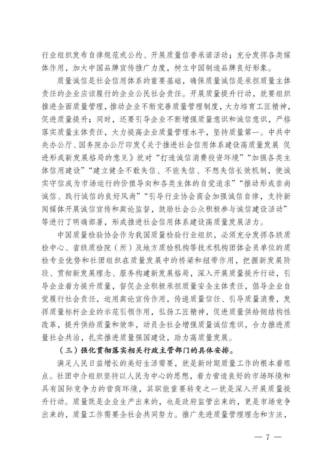 李克強(qiáng)總理批示指出,打造集質(zhì)量、標(biāo)準(zhǔn)、技術(shù)、品牌等于一體的高品質(zhì)產(chǎn)品和服務(wù),在市場競爭中鍛就中國質(zhì)量、培育中國精品。倡導(dǎo)企業(yè)對(duì)產(chǎn)品和服務(wù)質(zhì)量作出誠信倡議,也是中國質(zhì)量檢驗(yàn)協(xié)會(huì)自2004年以來組織開展全國“質(zhì)量月”企業(yè)質(zhì)量誠信倡議專題活動(dòng)的要義。謹(jǐn)期社會(huì)各界共同努力,推進(jìn)質(zhì)量社會(huì)共治,抓好產(chǎn)品和服務(wù)的高品質(zhì)質(zhì)量提升,共同為我們的質(zhì)量強(qiáng)國事業(yè)去奮斗!