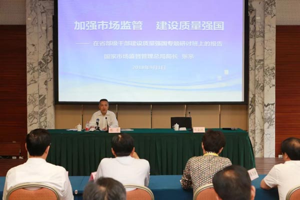 在我國第40個(gè)全國“質(zhì)量月”到來之際,9月1日,由中共中央組織部、中國浦東干部學(xué)院和國家市場監(jiān)督管理總局共同舉辦的“省部級干部建設(shè)質(zhì)量強(qiáng)國專題研討班”在滬開班,這也是繼兩年前在京舉辦首個(gè)省部級干部“全面實(shí)施質(zhì)量強(qiáng)國戰(zhàn)略專題研討班”之后的第二個(gè)省部級質(zhì)量強(qiáng)國戰(zhàn)略專題研討班。市場監(jiān)管總局局長、黨組副書記張茅作為首位授課人,在專題研討班上以“加強(qiáng)市場監(jiān)管 建設(shè)質(zhì)量強(qiáng)國”為題做了專題講座。